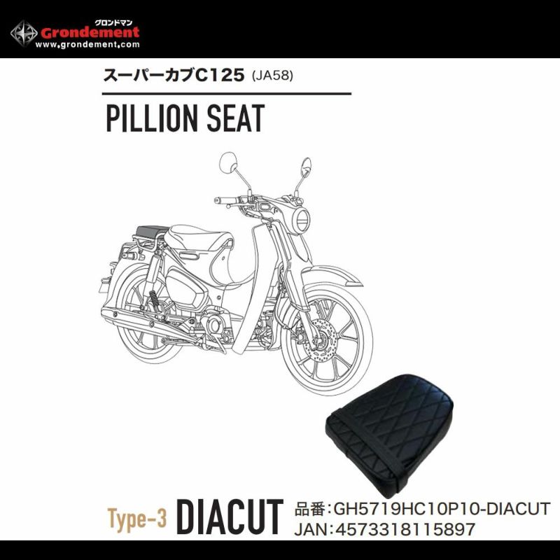 3. Grondement グロンドマン 3Dシートカバー TYPE3 ダイヤカットシートカバー スーパーカブC125(JA58) 純正ピリオンシート専用