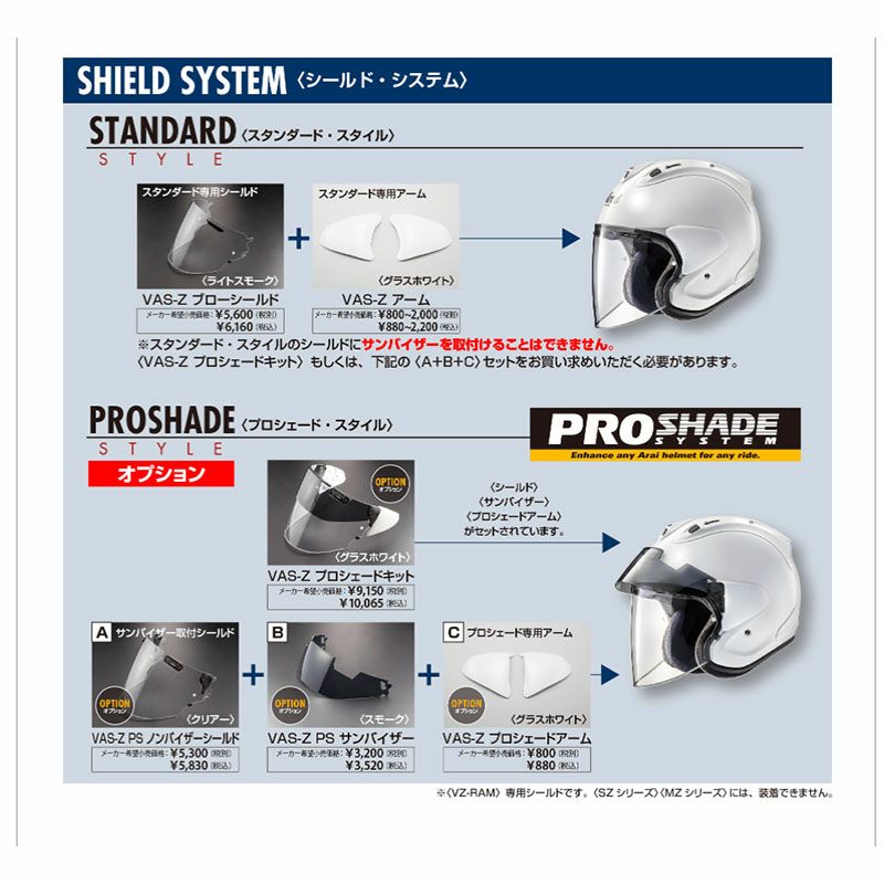 Arai アライ ヘルメット Arai シールドパーツ Arai アライ ヘルメットパーツ VAS-V ポスト付シールド ライトスモーク 011053