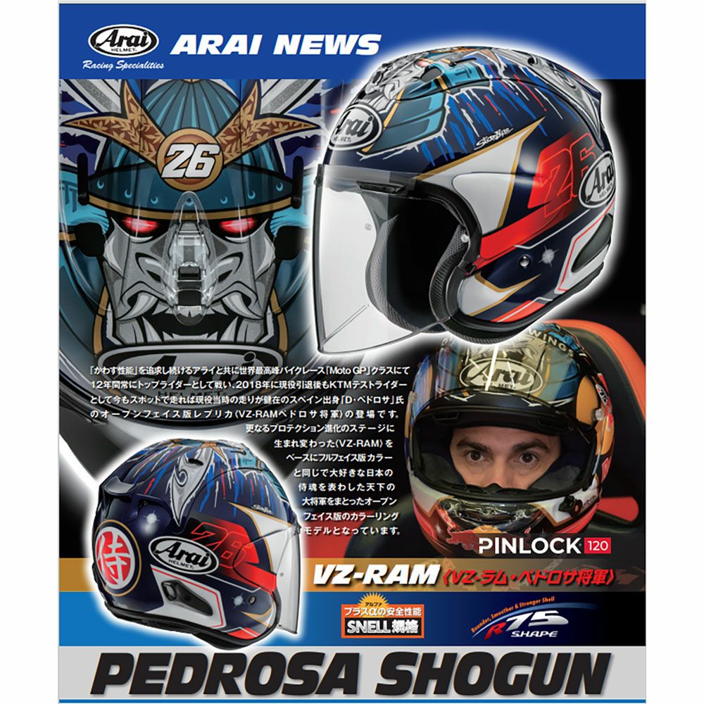 Arai アライ ヘルメット さらなるプロテクション進化のステージに生まれ変わり、ライダーの新しい楽しみを広げる新世代オープンフェイス ヘルメット Arai アライ オープンフェイス VZ-RAM PEDROSA SHOGUN(ペドロサショウグン)スポーツジェット