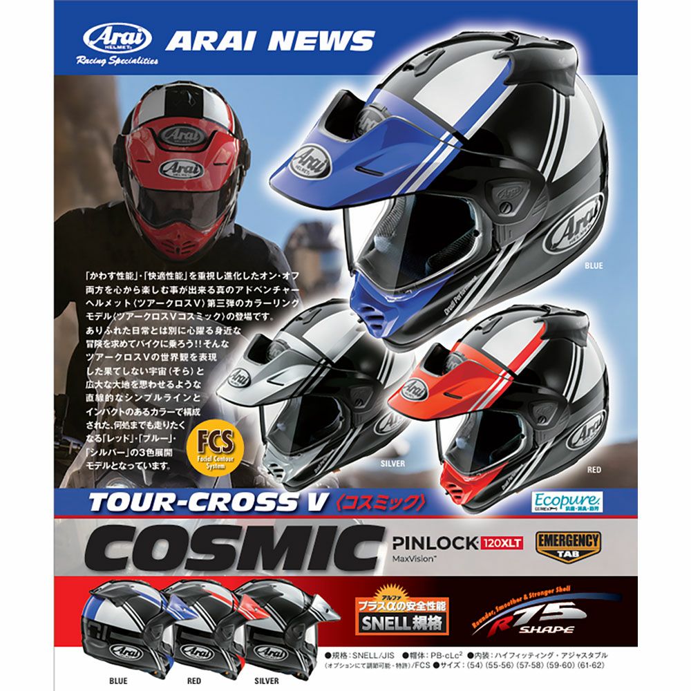 Arai アライ ヘルメット 宇宙(そら)と広大な大地を思わせるような直線的なシンプルラインとインパクトのあるカラー Arai アライ オフロード ヘルメット TOUR-CROSS V COSMIC (ツアークロスV コスミック)