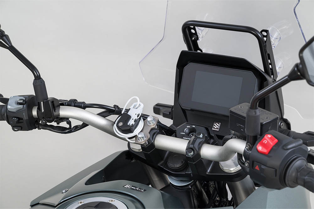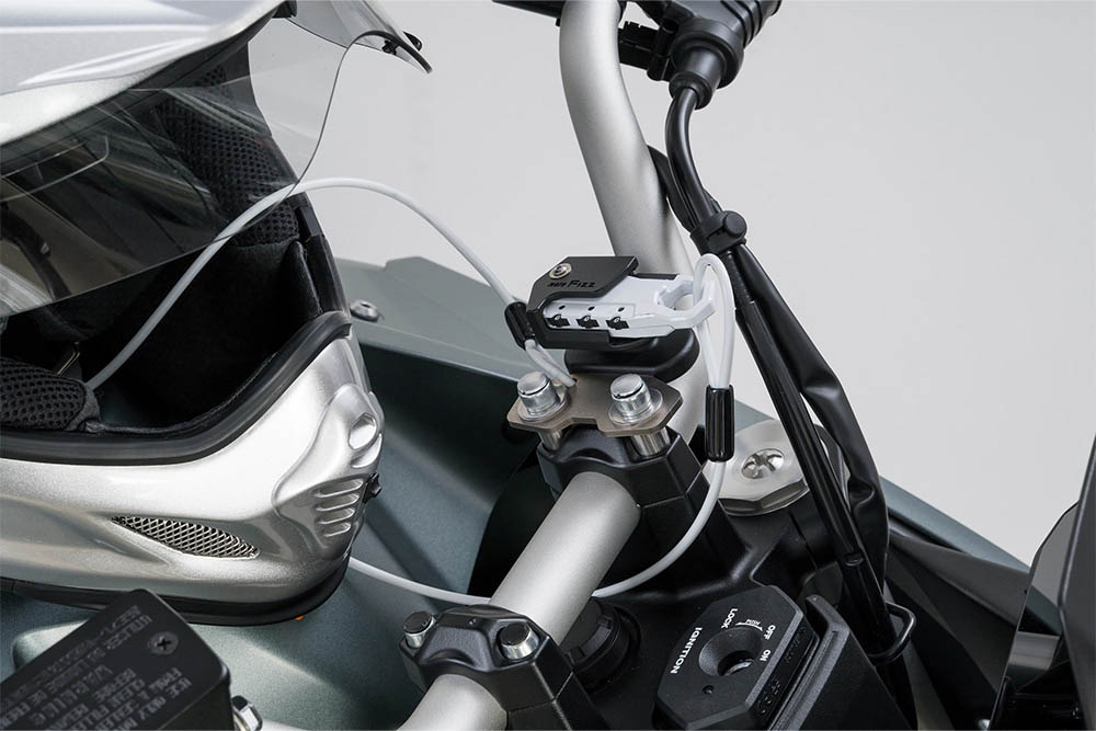 タンクに近い位置のハンドルクランプに取り付け出来るヘルメットワイヤーロック