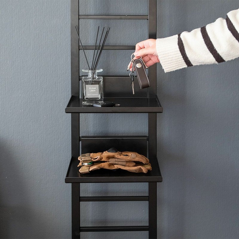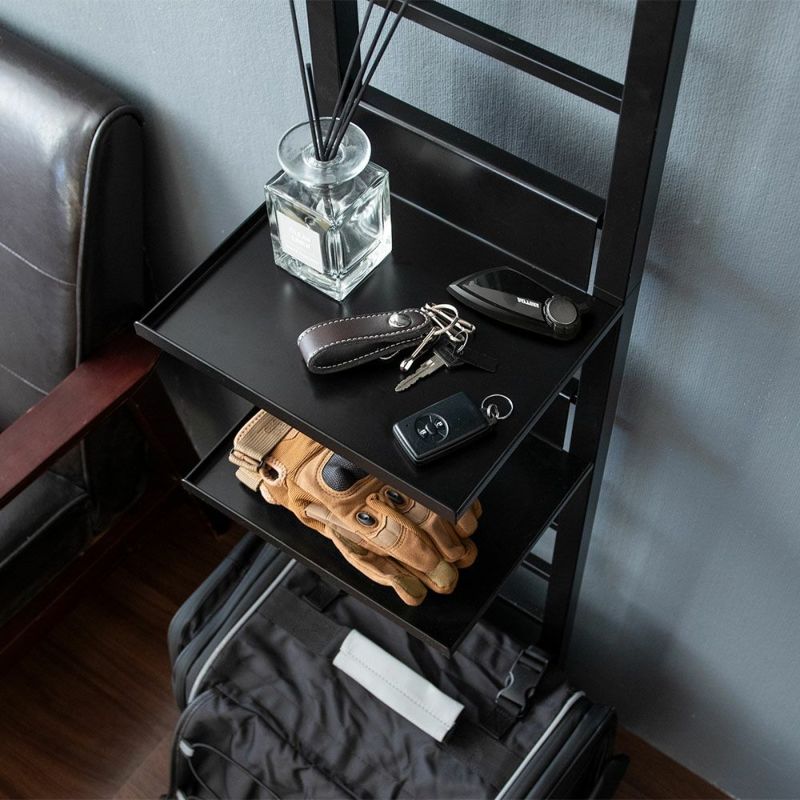 面倒な組み立ては不要で、スタンドに掛けるだけでキーやグローブが収納できる棚