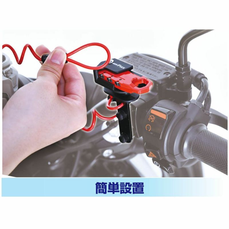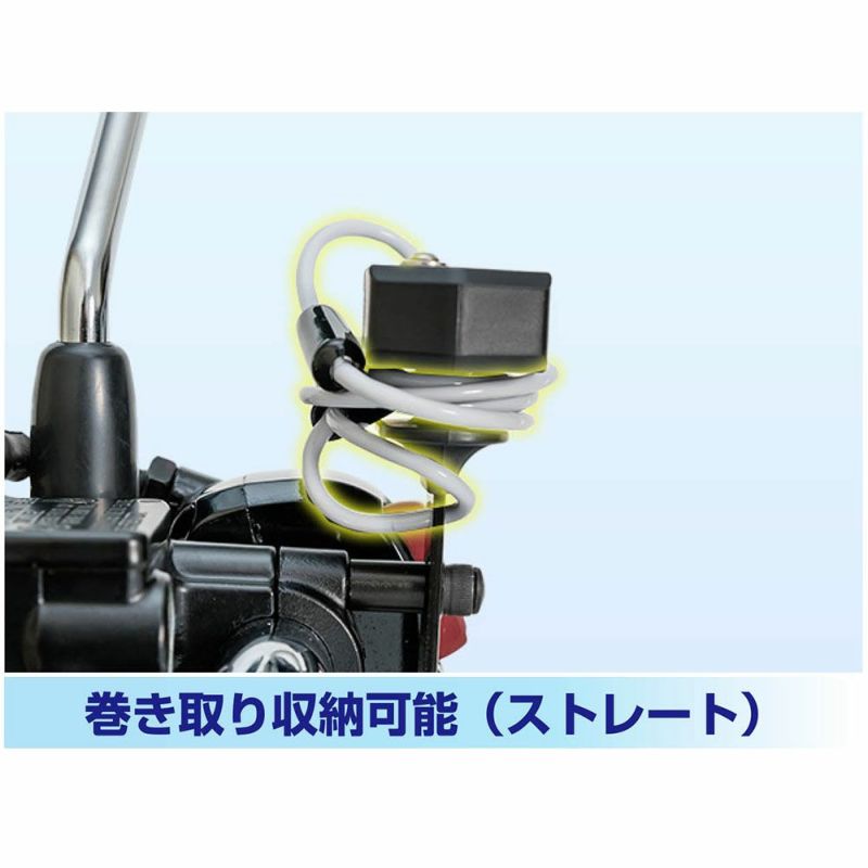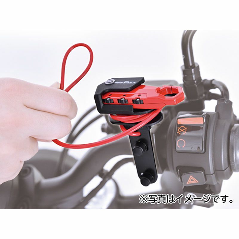 ハンドル装着部からケーブルを引き出してヘルメットをロック!(ジェットヘルメットのDカンはストレートのみOK)
