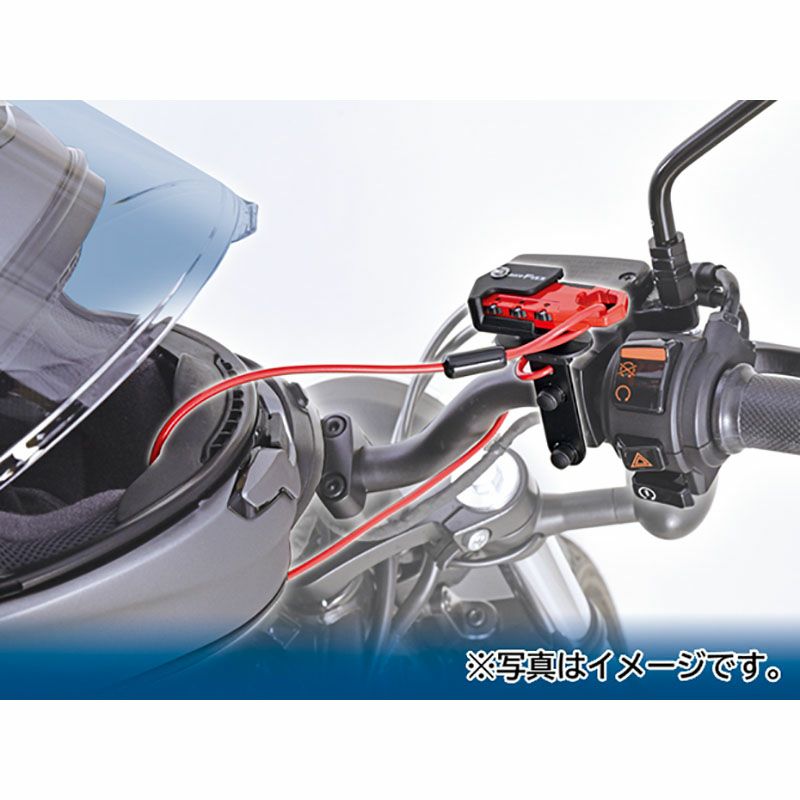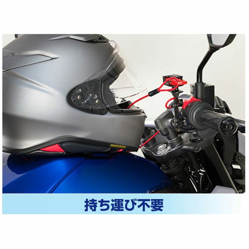 ハンドル装着部からケーブルを引き出してヘルメットをロック!(ジェットヘルメットのDカンはストレートのみOK)