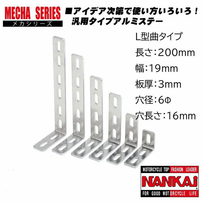 アイデア次第で使い方いろいろ!汎用タイプアルミステー NANKAI アルミメカステー L型曲 全長200×幅19mm (Φ6mm×16mm) 0039 南海部品
