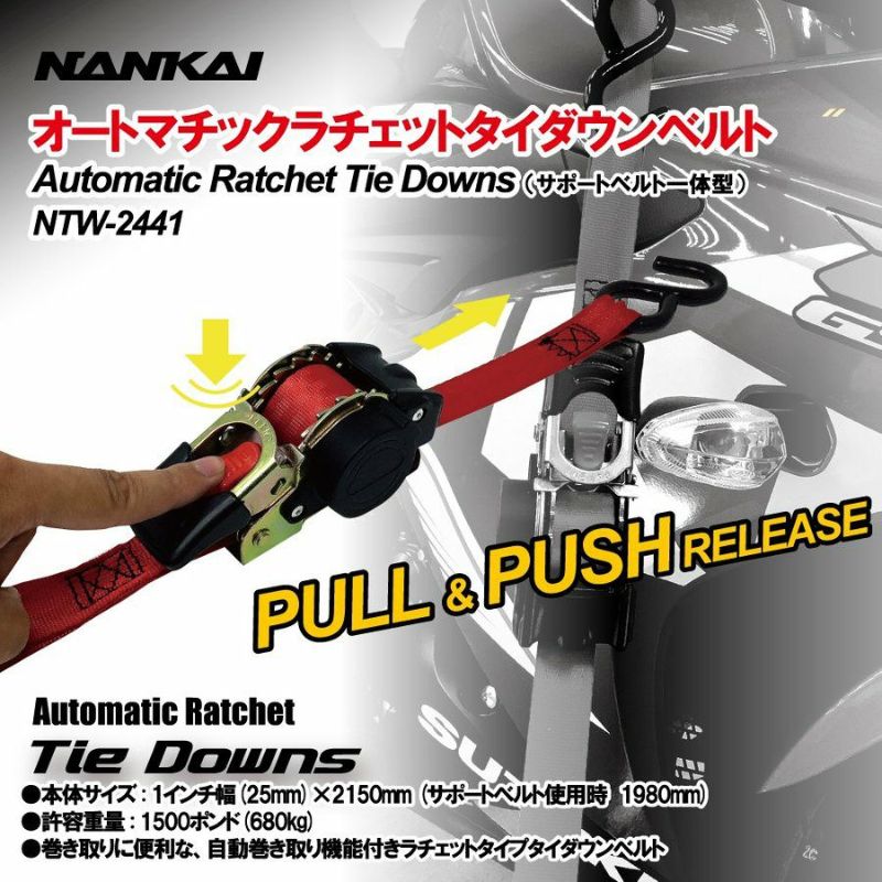 ■メーカー:NANKAI(ナンカイ)■品番:NTW-2441 オートマチックラチェットタイダウンベルト(2本1組・サポートベルト一体型)