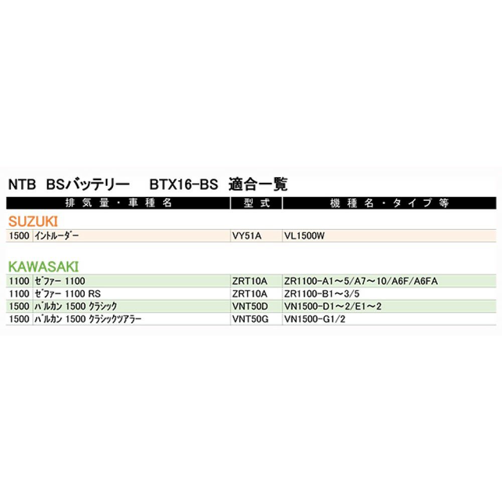 メンテナンスフリーバッテリー(補水不要、初回注液・初充電は必要) BSバッテリー BTX16-BS