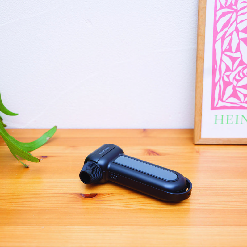トリガースイッチを1度押すと自動で空気が噴射し続けます。もう1度押すと噴射が止まります。