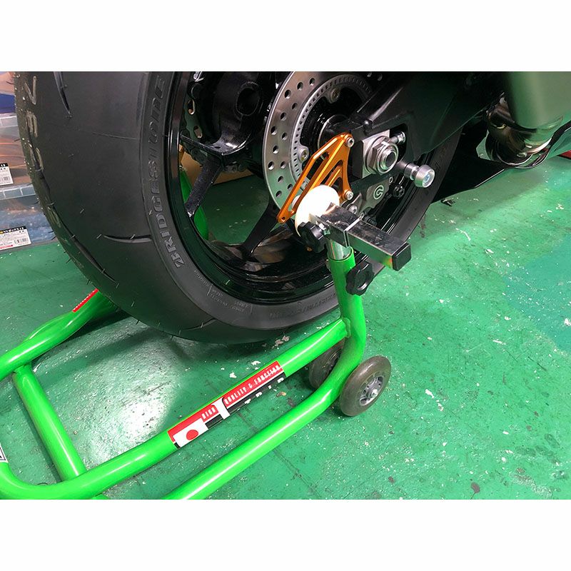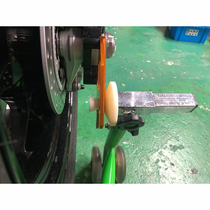 スイングアーム先端に「Vプレート」を装着している場合に使用する ジュラコン製の円盤タイプの受け。 Vプレートは、どのメーカーのものでも使用可能です。