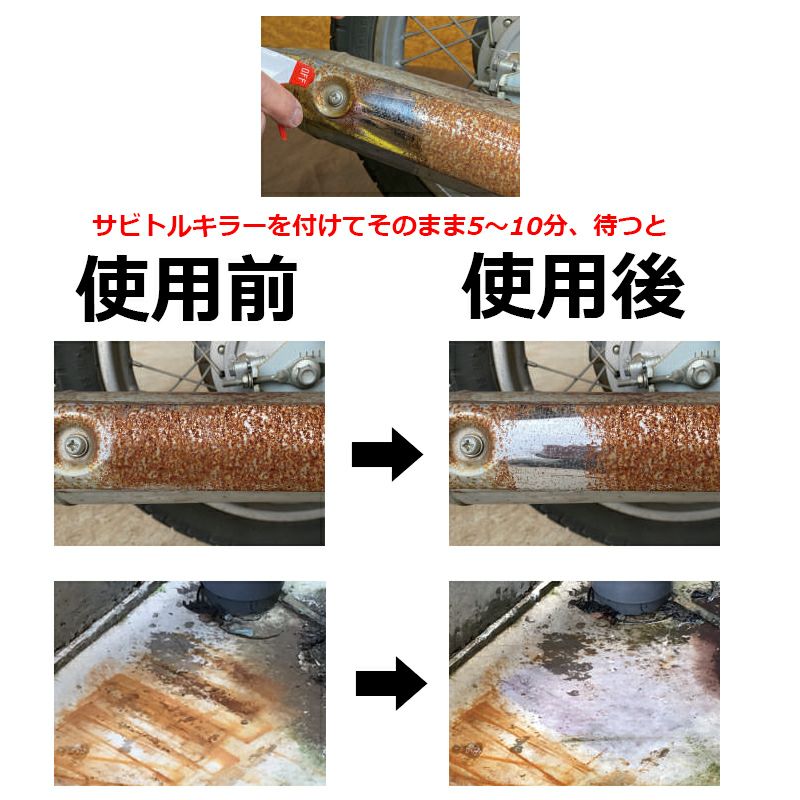 サビキラー強力サビトルキラーは、サビに直接かけるだけでみるみるサビを分解・除去します。