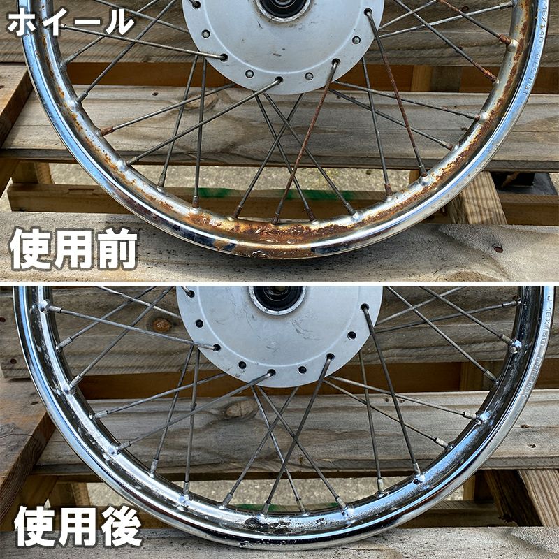 ハンドル・スポーク・マフラーなどサビの出やすいバイク・自動車・自転車のパーツはもちろん、駐車場