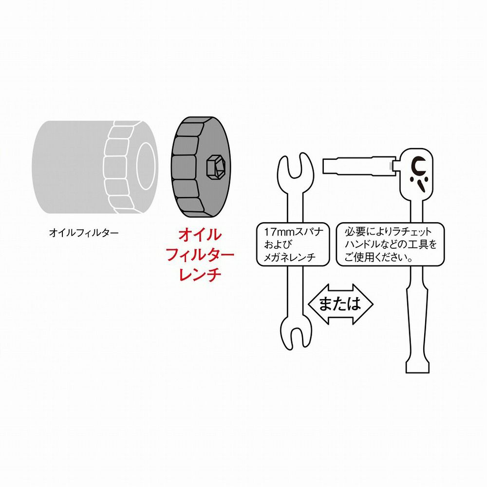 ●使用に際してはスパナ・メガネレンチ17mmもしくは9.5sq(3/8角)のラチェットハンドルを御用意下さい。
