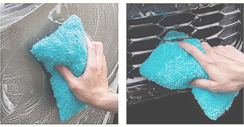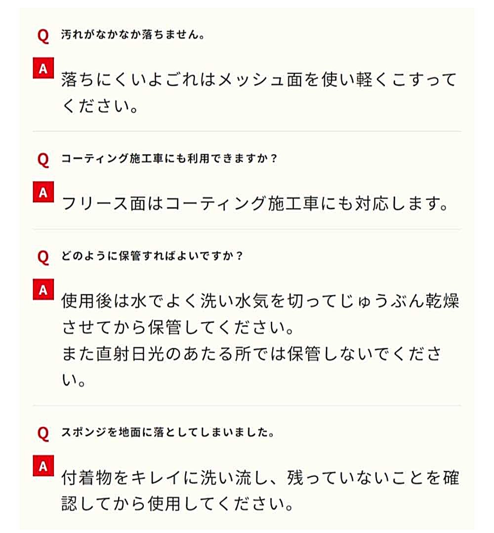 ◆フリース面でやさしく「なで洗い」コーティング施工車にも使用できる。
