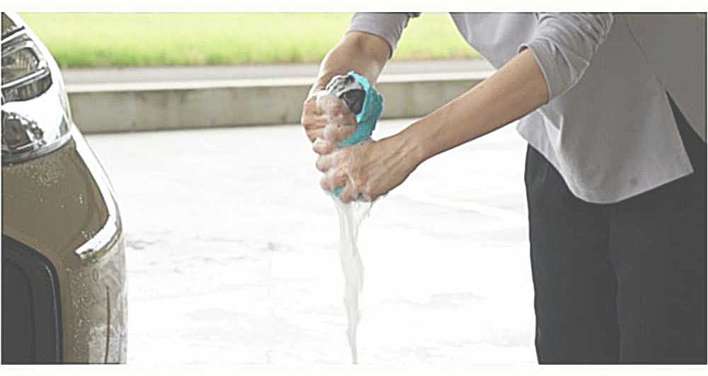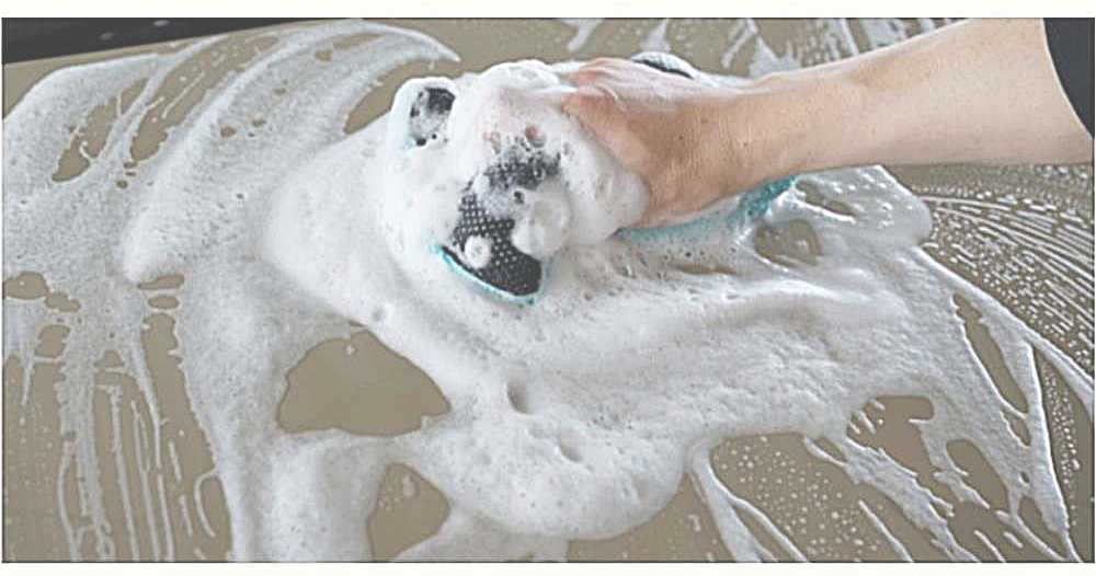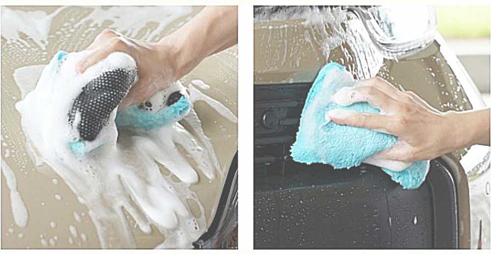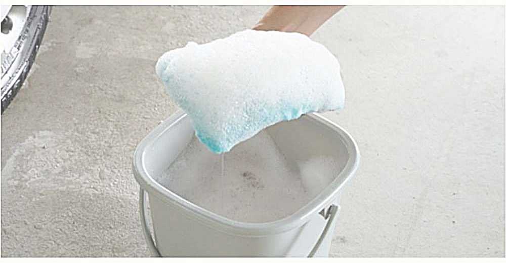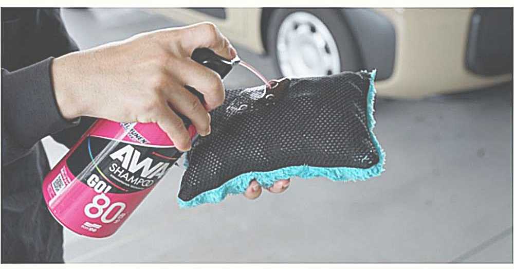 ①本品にカーシャンプーをじゅうぶん含ませてよく泡立てます。