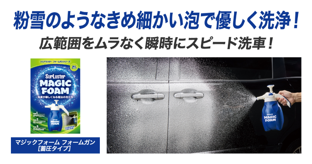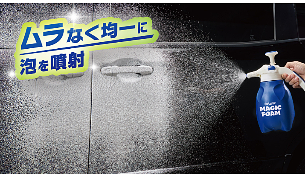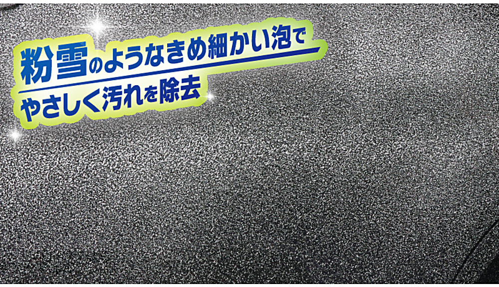 きめ細かい泡がボディにしっかり密着し、キズをつけずにやさしく洗浄。泡が持続するのでシミの発生を防ぎます。