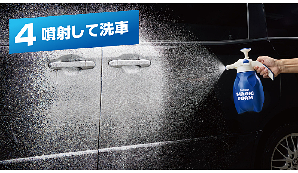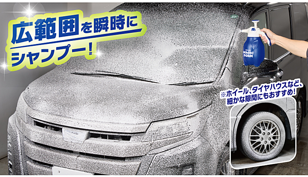 スピーディー&効率的な洗車を実現。ミニバンのガラスやルーフなどの手の届きにくい箇所も、隅々までしっかり噴霧・洗浄!短時間で車全体を素早くキレイに仕上げます。