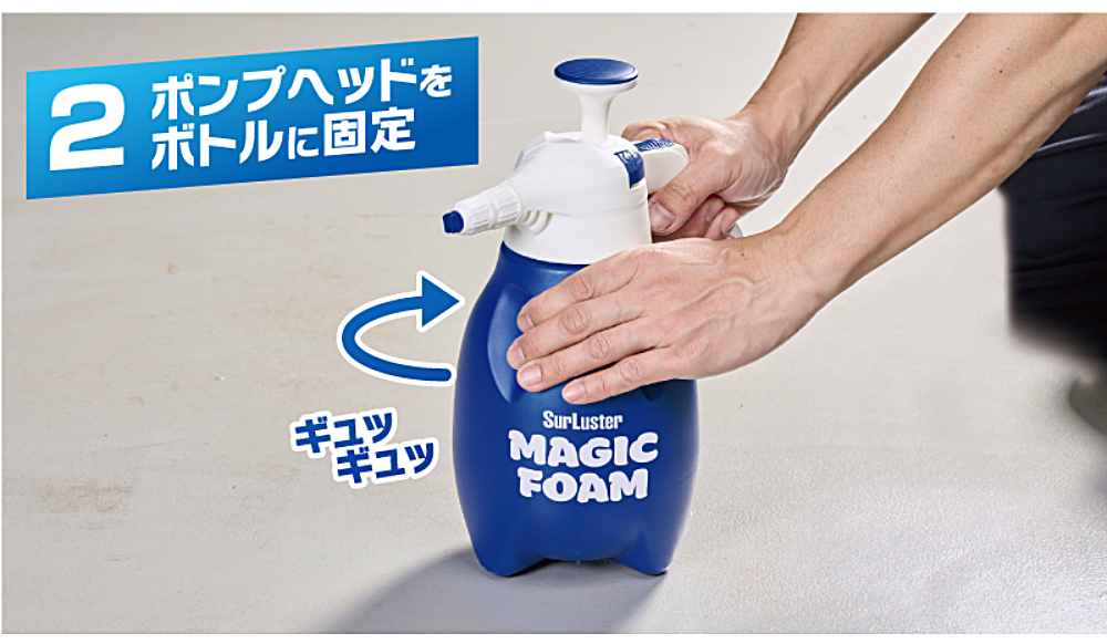 ポンプヘッドを外した後、ボトルに『マジック フォームシャンプー』と水を適量入れます。