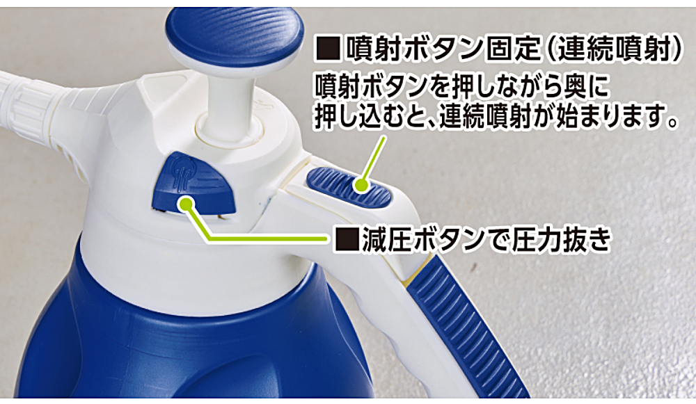 噴射ボタンを押しながら奥に押し込むと、連続噴射が始まります。