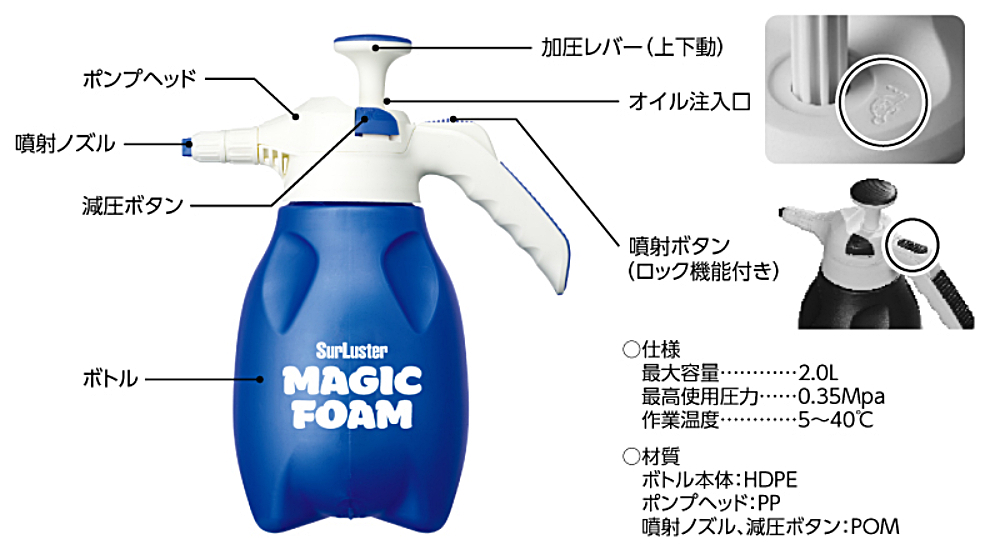 電源不要!広範囲をムラなく瞬時にシャンプーし、粉雪のようなきめ細かい泡で優しく洗浄!電源不要・手動タイプ|一般的な酸性・アルカリ性シャンプーに対応|容量2L
