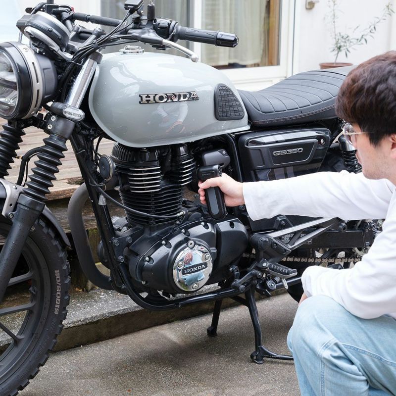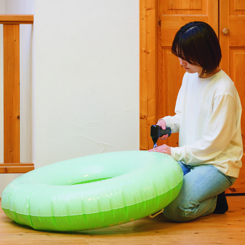トリガースイッチを1度押すと自動で空気が噴射し続けます。もう1度押すと噴射が止まります。