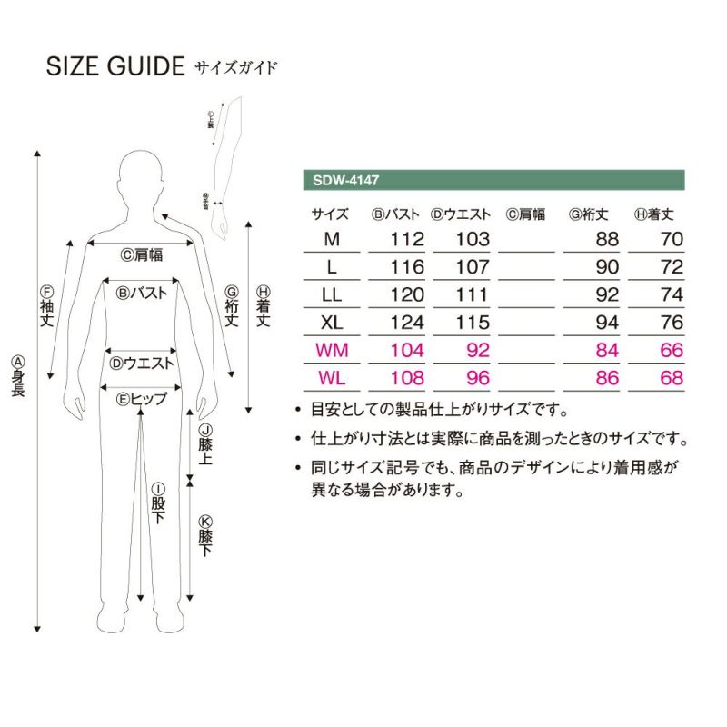 | サイズ | バスト | ウエスト | 肩幅 | 袖丈 | 着丈 |