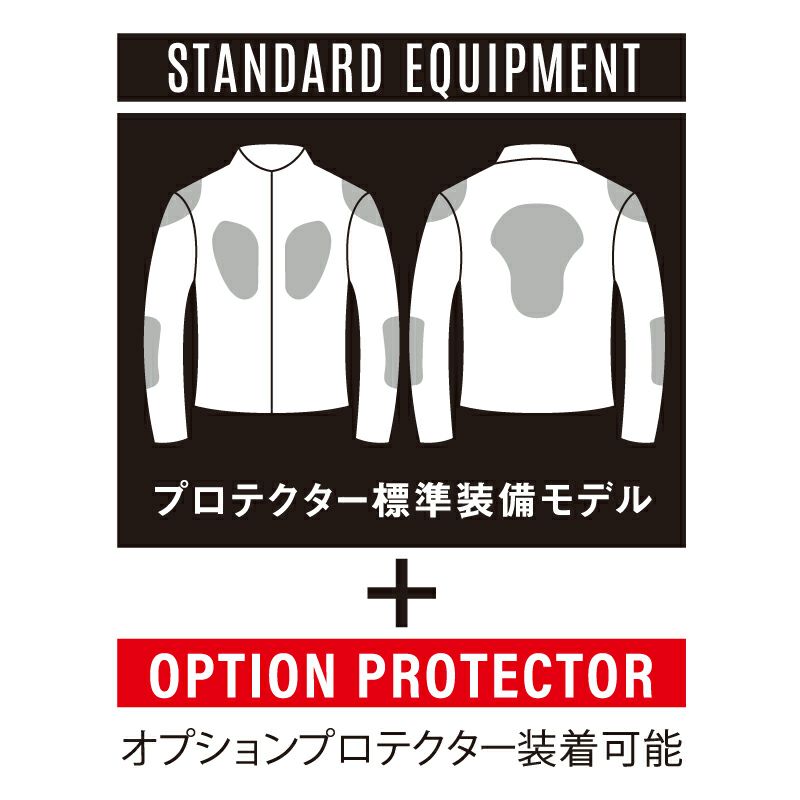 ・肩・肘・背中・胸には標準でソフトメッシュプロテクターを標準装備。