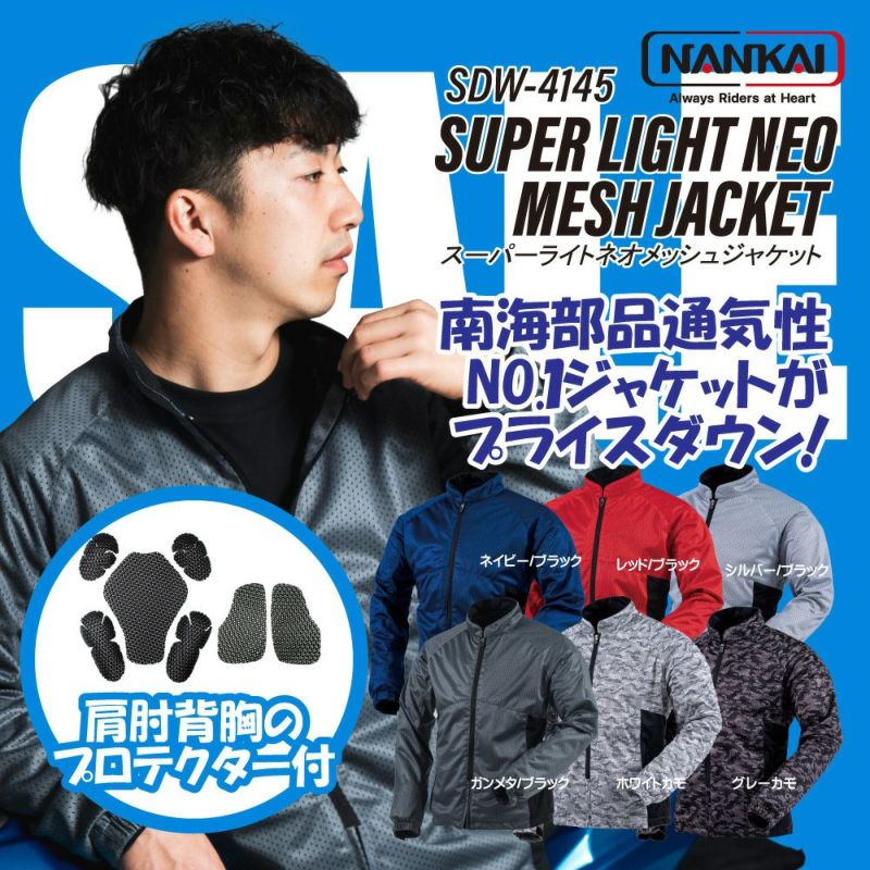 Tシャツの上にもう1枚使いやすさ抜群のデイリーユースジャケット スターシリーズ 【在庫限り】 【プロテクターセット】NANKAI ナンカイ スーパーライトメッシュジャケット 品番:SDW-4145 南海部品