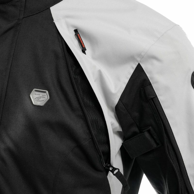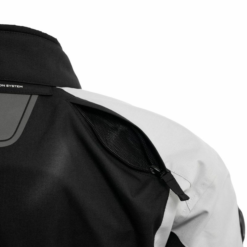 大型ベンチレーション付きテキスタイルジャケット。肩・肘にはCE規格プロテクターを装備し、胸部プロテクターも標準装備。