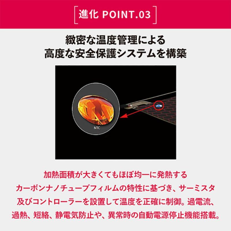 ※1 圧さわずか3~10㎛のカーボンナノチューブフィルムをポリエステルなどの保護絶縁膜で挟み込んだ、布のように薄くて柔らかく、面全体が均一に、且つ瞬時に発熱するヒーターユニット。
