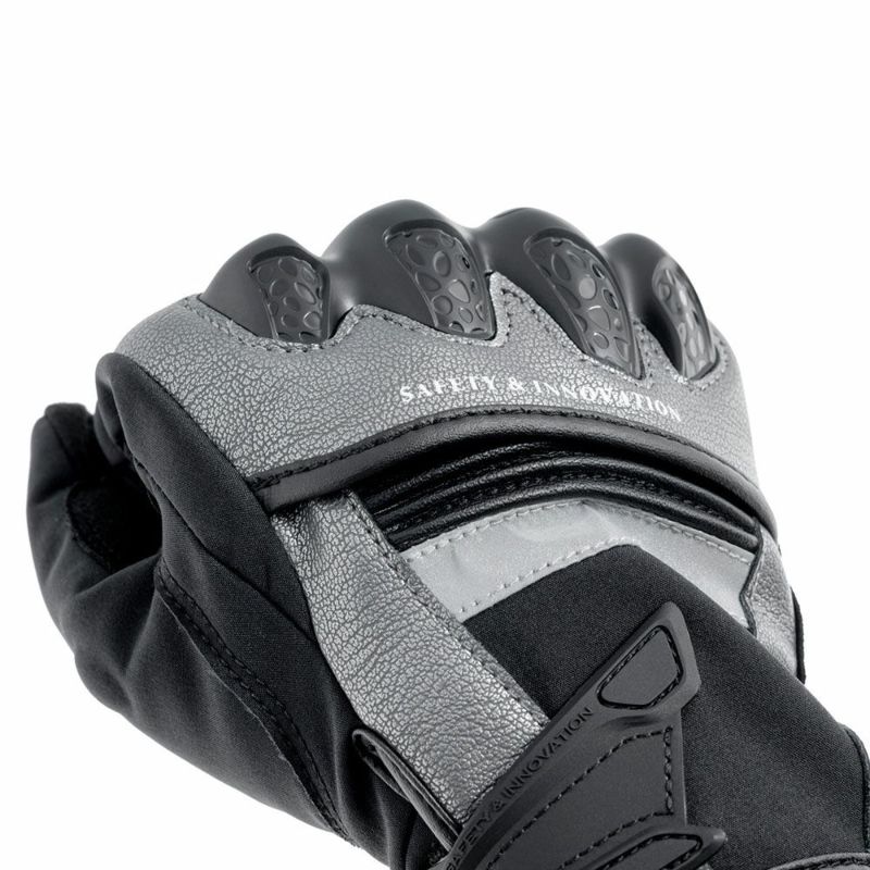 独自に開発したプラスチックナックルガードを採用したグリップヒーターと相性抜群の防風仕様ウインターグローブ。