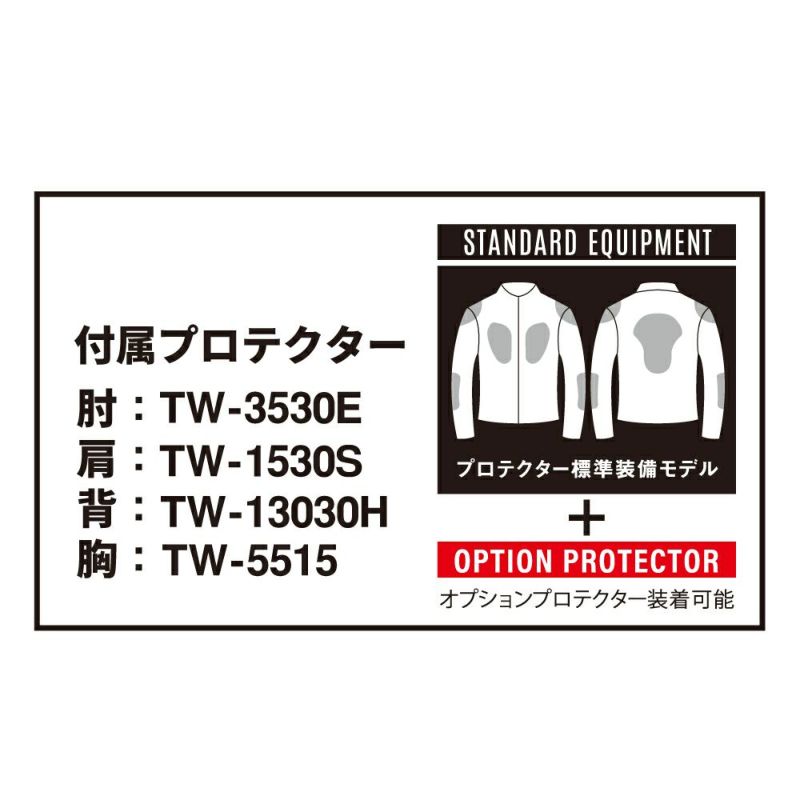 • 肩、肘、背中、胸にソフトメッシュプロテクターを標準装備。