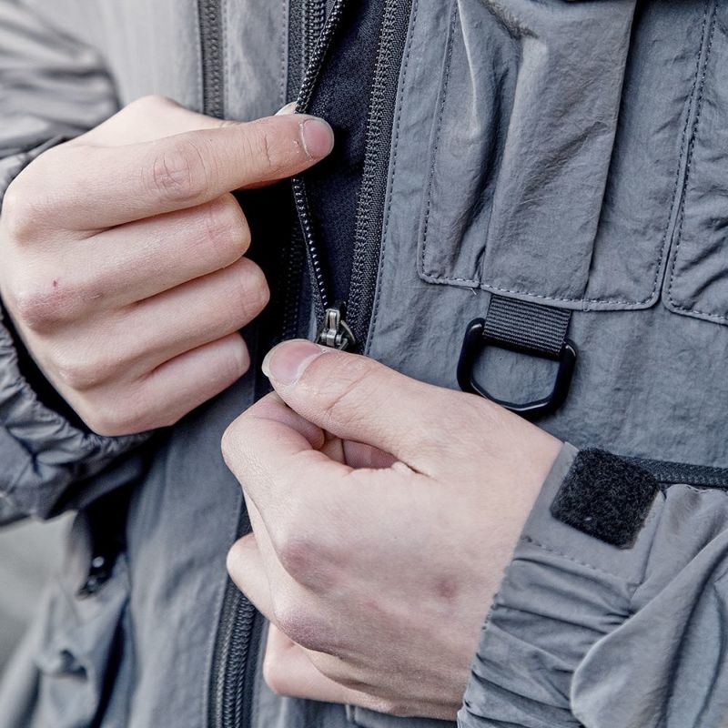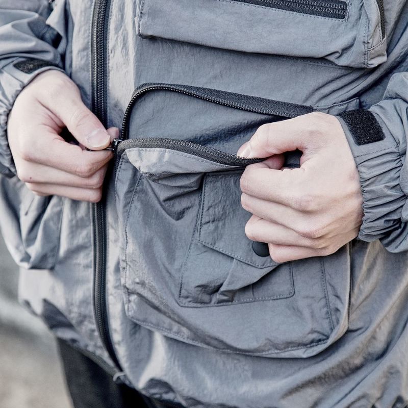 ・ 胸部、背面、肩、肘にはプロテクターポケットを配置し軽量なプロテクターを標準装備。