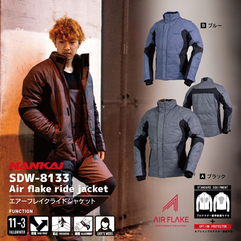 羽毛を越える高性能中綿『AIR FLAKE』を採用した新モデル NANKAI エアーフレイクライドジャケット SDW-8133 南海部品