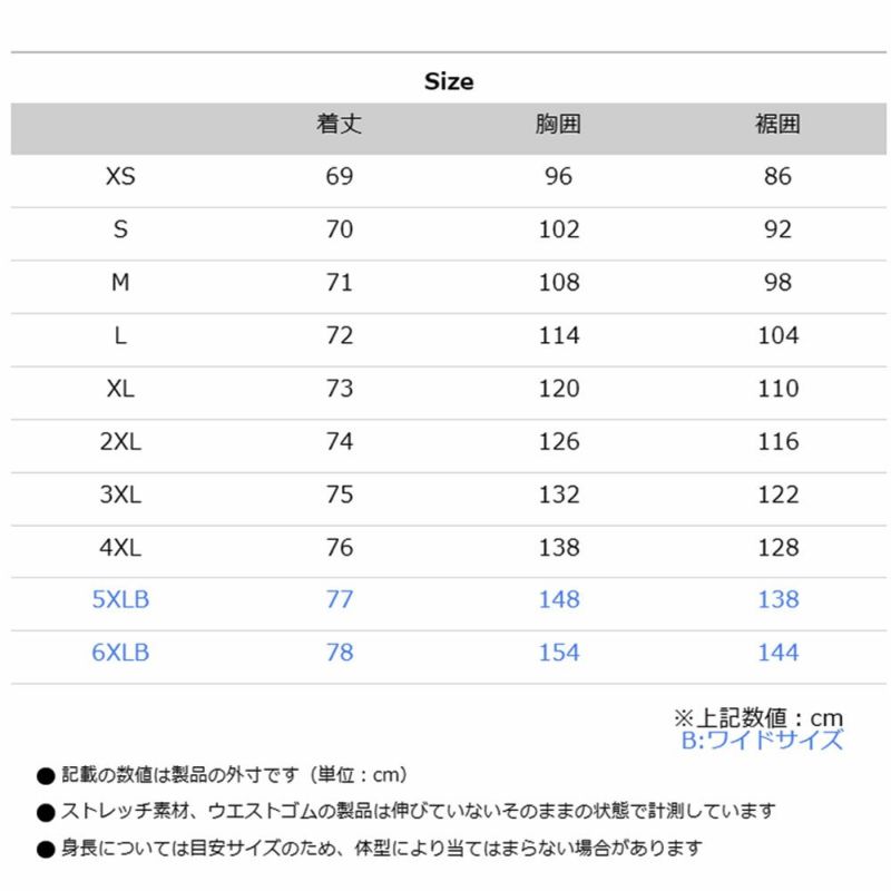 ■サイズ:XS、S、M、L、XL2XL、3XL、4XL、5XLB、6XLB