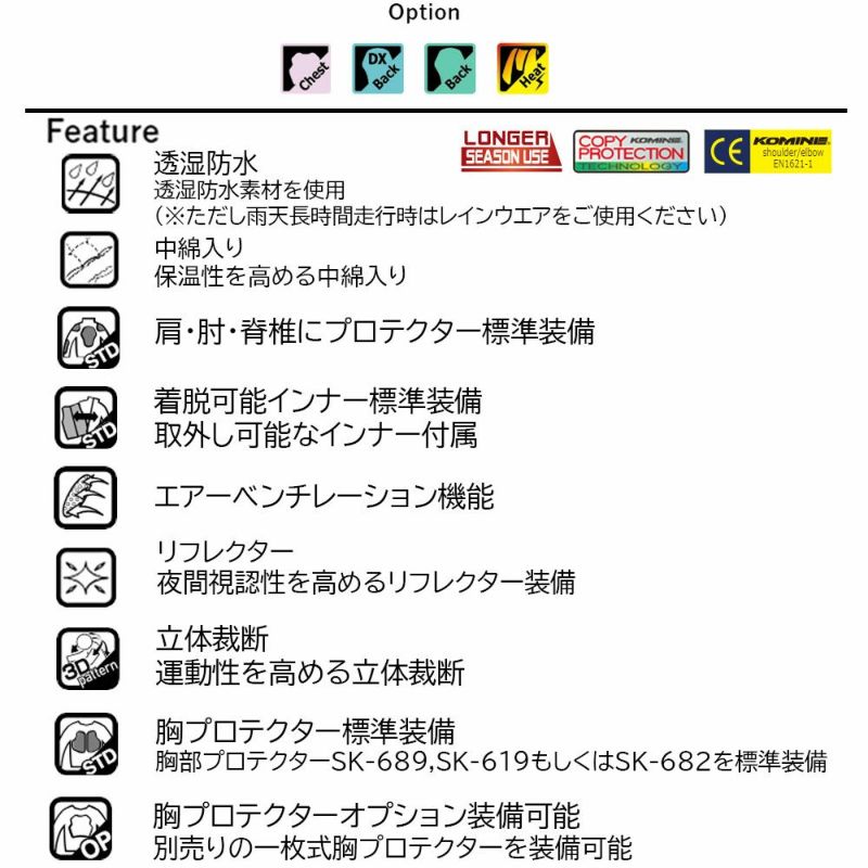 ・CE規格ハードプロテクター標準装備<肩><肘>