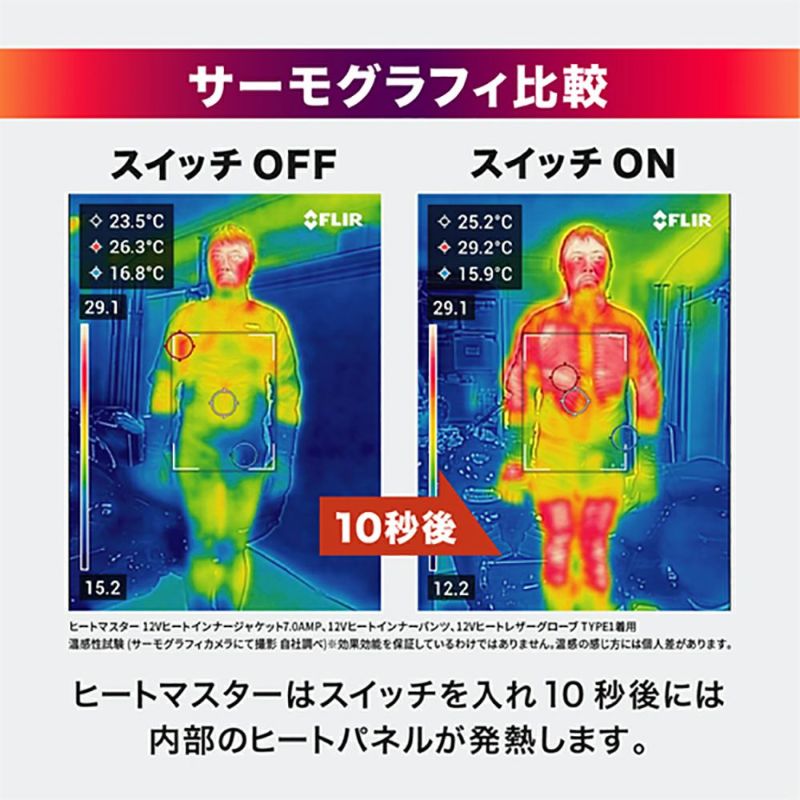 ●ヒートパネル:6ヶ所(首/両胸/両腕/背中)●ヒートシステム:3段階温度設定