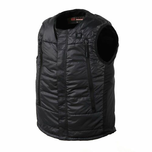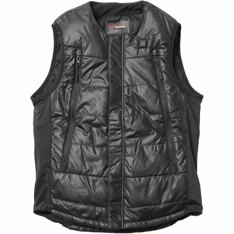 両胸背中に小型のヒートパネルを搭載した軽快なベスト。ボディサイドに伸縮性のあるリブを設けることで、 ライダーの体格を問わないフィット感を実現した。バイクのみならずアウトドアシーンや普段使いでも活躍する。