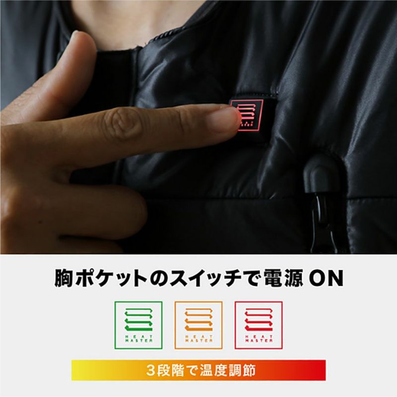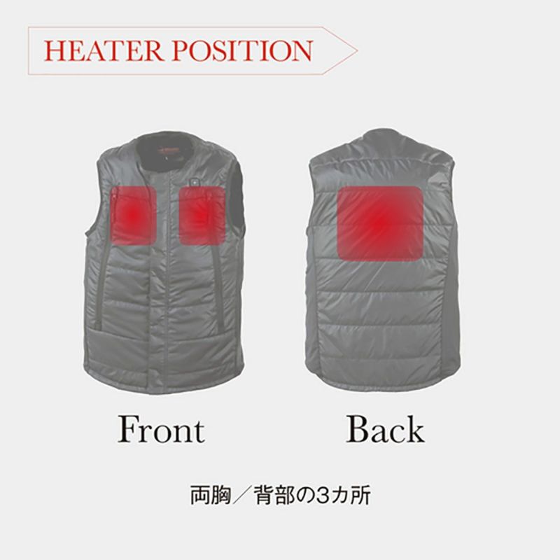 ●ヒートパネル:3ヶ所(両胸・背中)●ヒートシステム:3段階温度設定