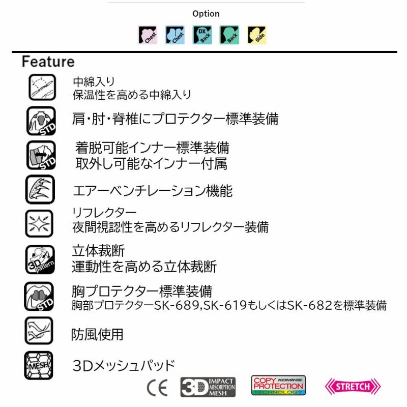 防風性と保温性を持ったソフトシェル素材を使用したウインタージャケット KOMINE コミネ プロテクトソフトシェルジャケット ソリアーノJK-627