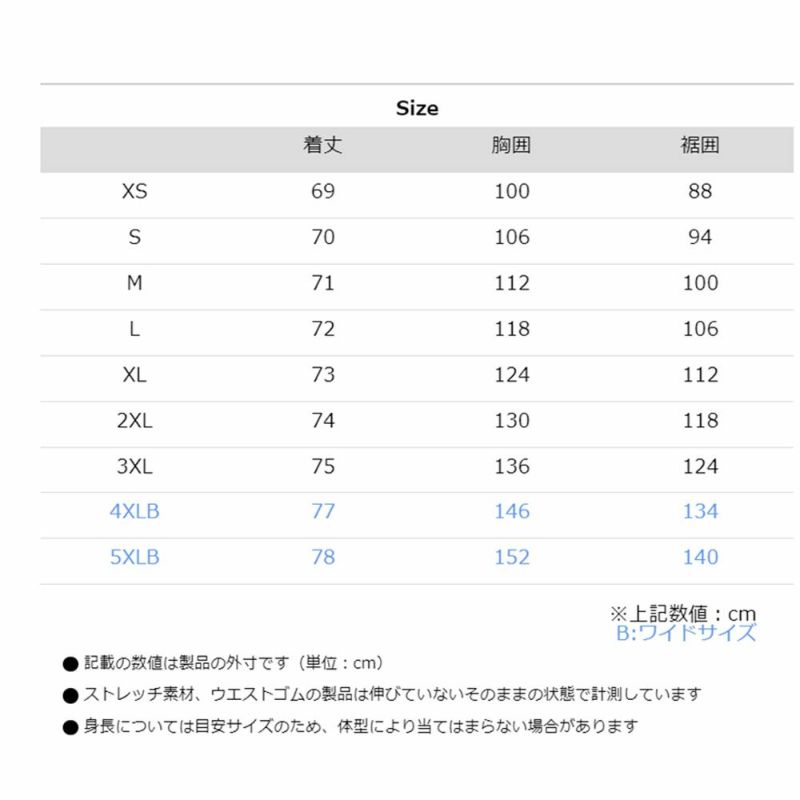 ■サイズ:XS、S、M、L、XL、2XL、3XL、4XLB、(BLACKのみ)5XLB
