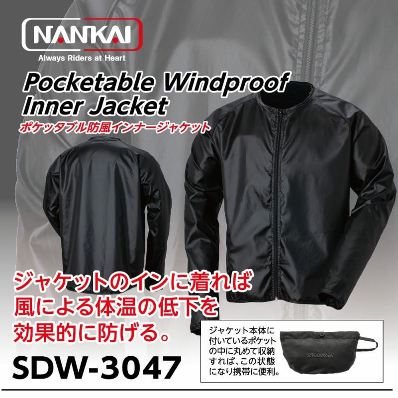 携帯にも便利!いつものジャケットの下に着るだけで防風対策ができるインナージャケット NANKAI ポケッタブル防風インナージャケット SDW-3047 南海部品