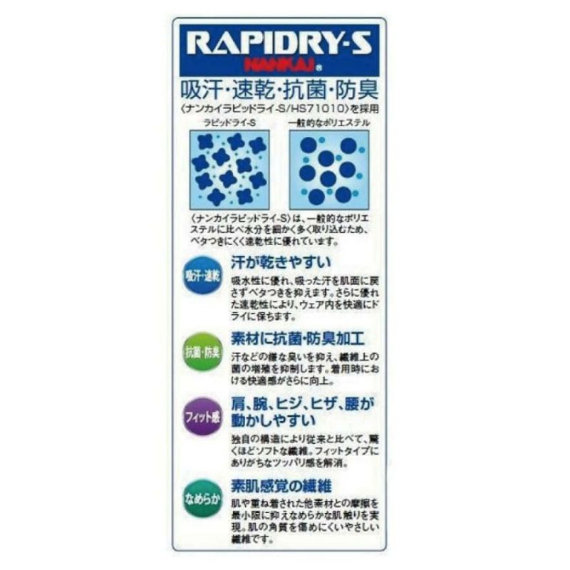吸汗・速乾・抗菌・防臭素材のNANKAI RAPIDRY-Sを採用