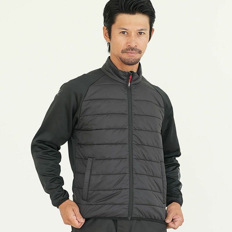 冷たい風を受け止める前面には保温性の高い中綿を使用し、袖や背面には動きの妨げにならない薄手で伸縮性の良いフリースを使用。