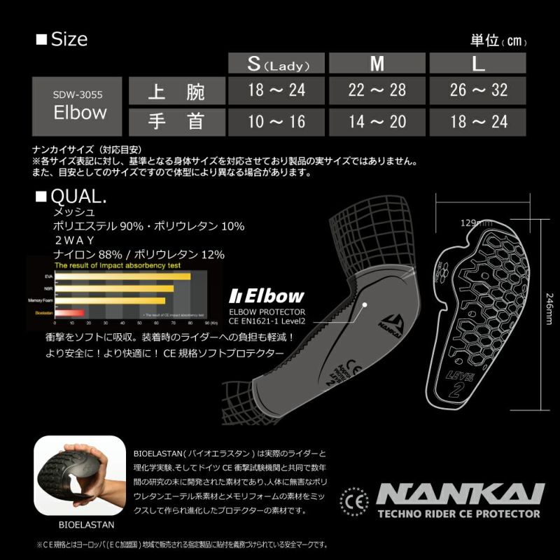 アームカバーにプロテクター機能を装備! NANKAI テクノライダーエルボーソフトプロテクター CEレベル2 SDW-3055 南海部品