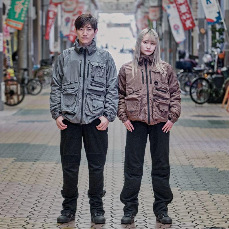 ・ リサイクルナイロンに塩縮加工を施し、ヴィンテージ感とハリのあるコットンライクな風合の国産生地を使用。