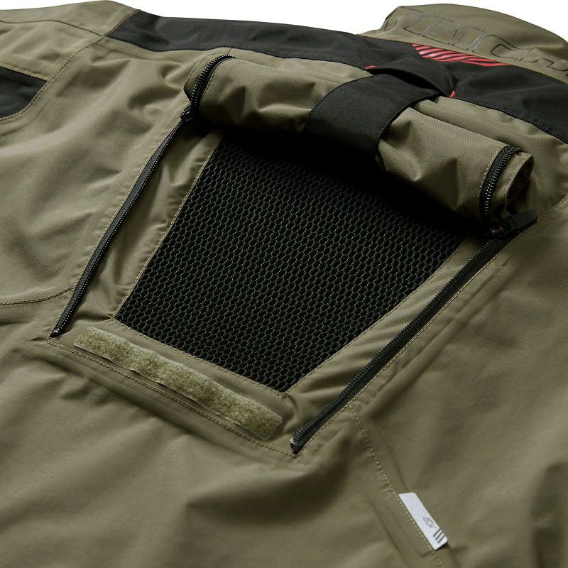 胸部プロテクター(別売品)を装着するためのアタッチメントを装備。スナップボタンにて胸部プロテクターの着脱が可能です。