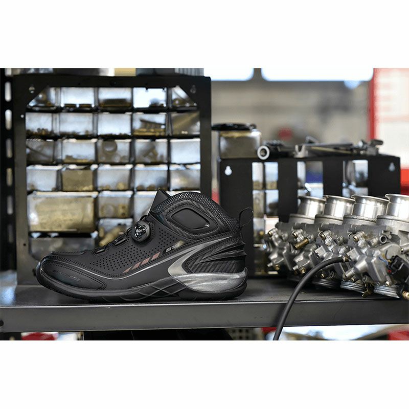 Function 03 グレードアップしたライディング機能 剛性、質感、耐久性に優れるTPU素材をシフトガードとアンクルガードに採用。気軽なスニーカースタイルに安心、快適なライディング機能を組み合わせました。 |