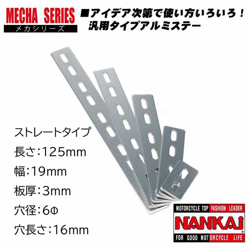 アイデア次第で使い方いろいろ!汎用タイプアルミステー NANKAI アルミメカステー ストレート 全長125×幅19mm (Φ6mm×16mm) 0035 南海部品
