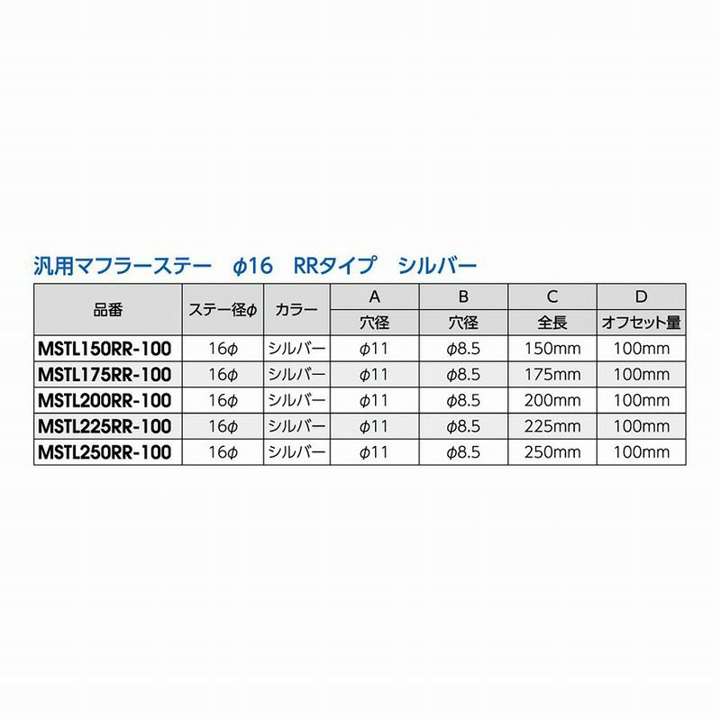品番 ステー径(φ) A:穴径 B:穴径 C:全長 D:オフセット量
