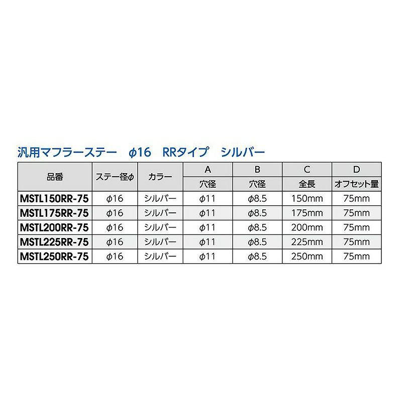 マフラーの取り付け、位置変更に NANKAI MSTL 汎用マフラーステーφ16 オフセット75cm RRタイプ シルバー 南海部品